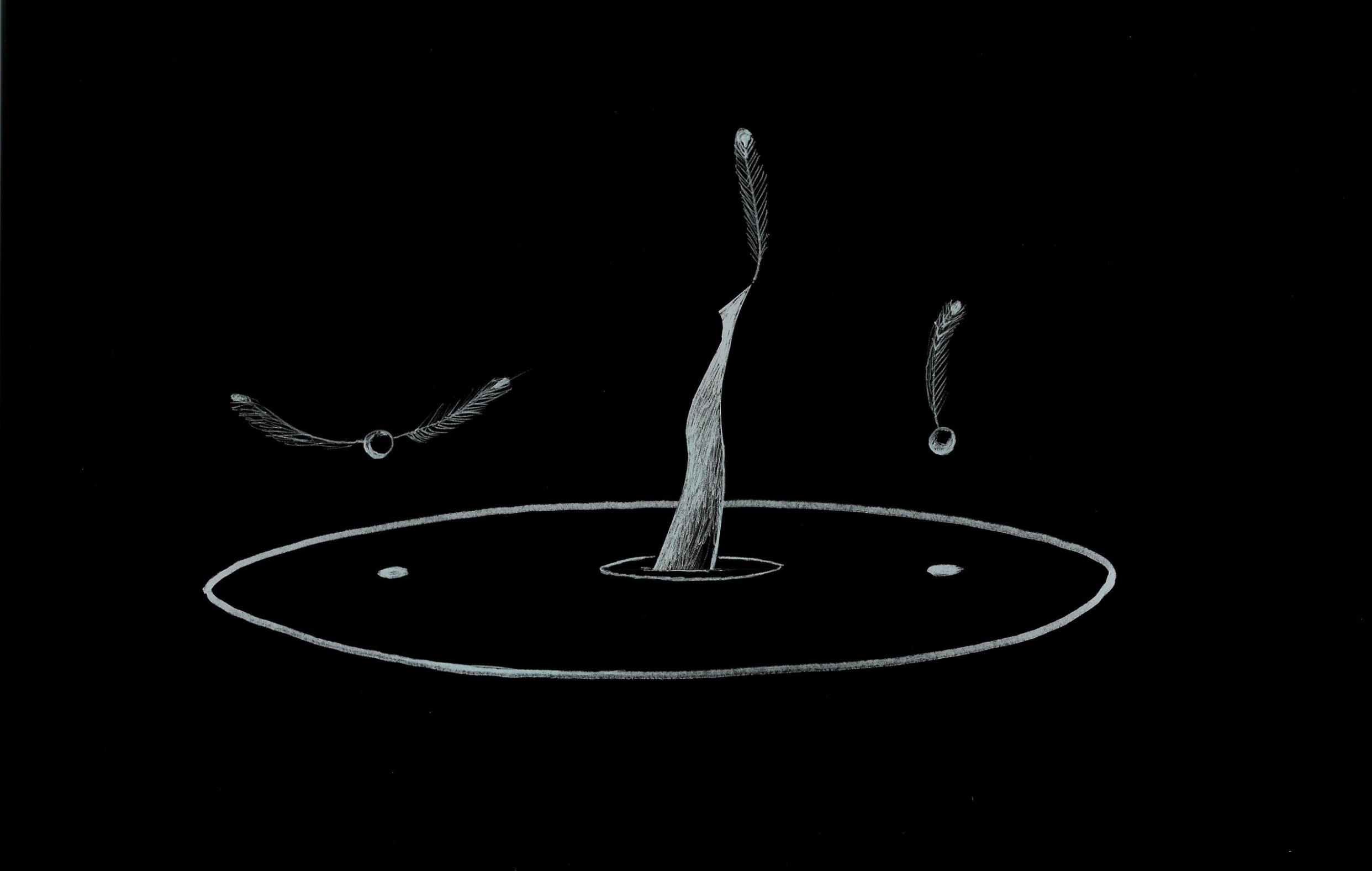 Precariously balanced, a round track 3 m in diameter, resting on a levitating pebble,